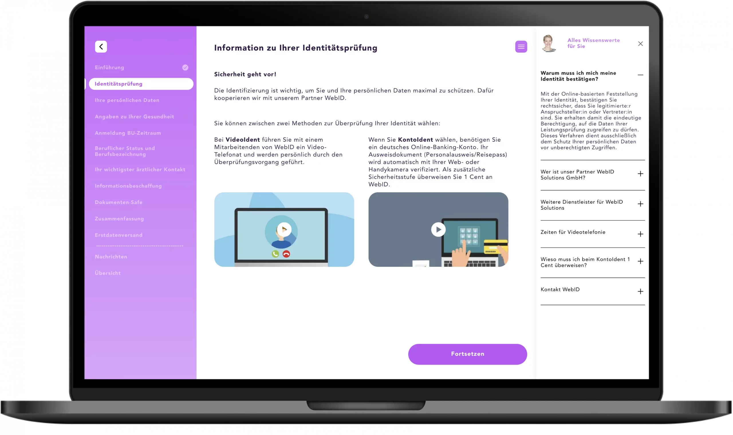 Zwei Identifikationsverfahren unseres Partners WebID zur Auswahl durch die Nutzenden