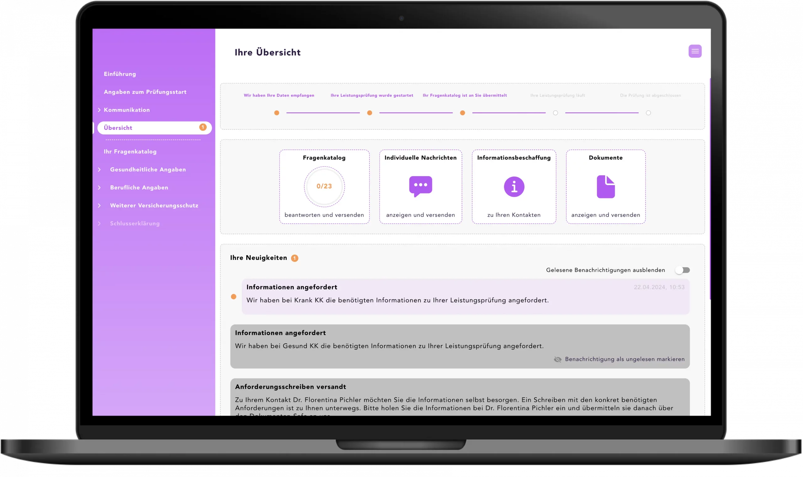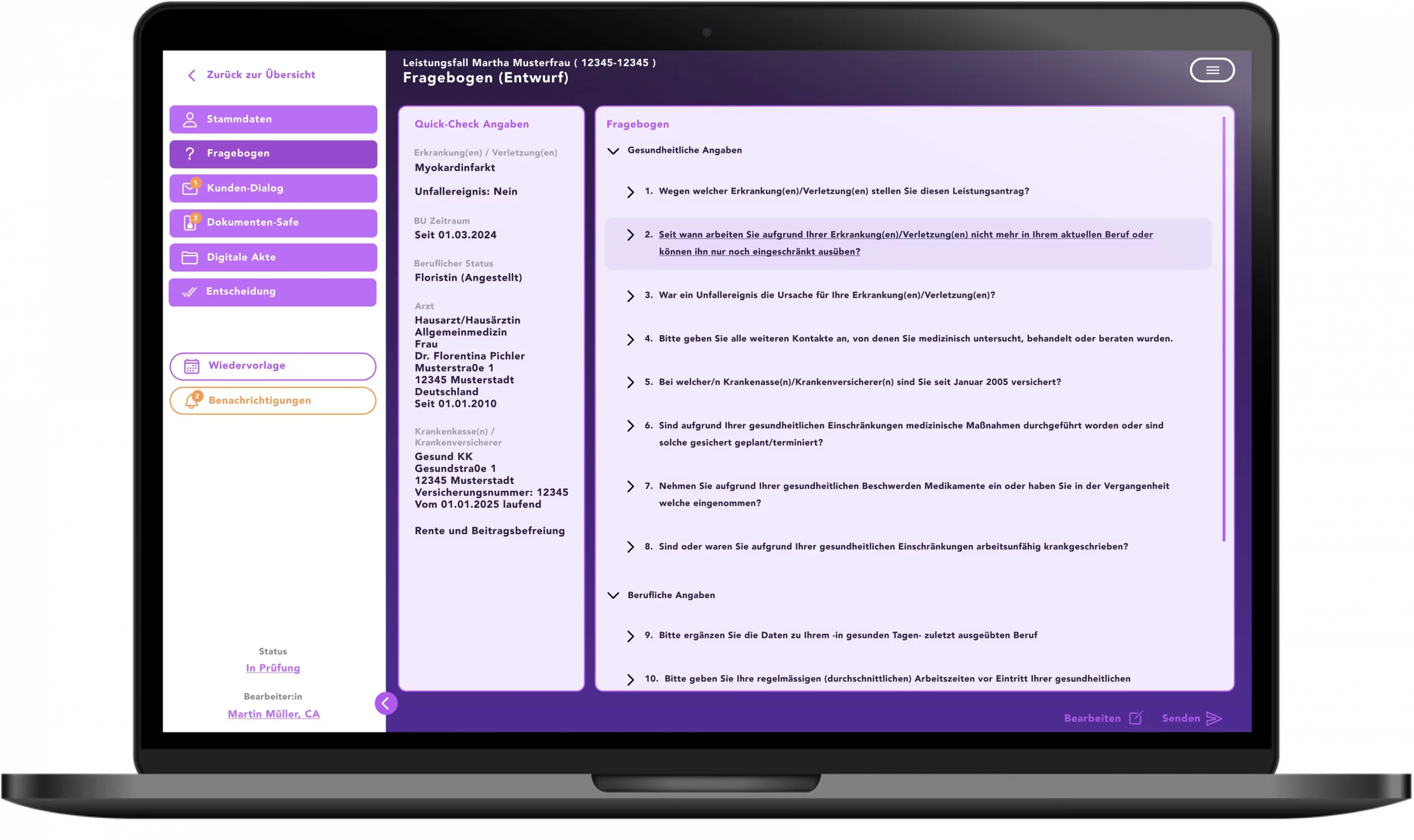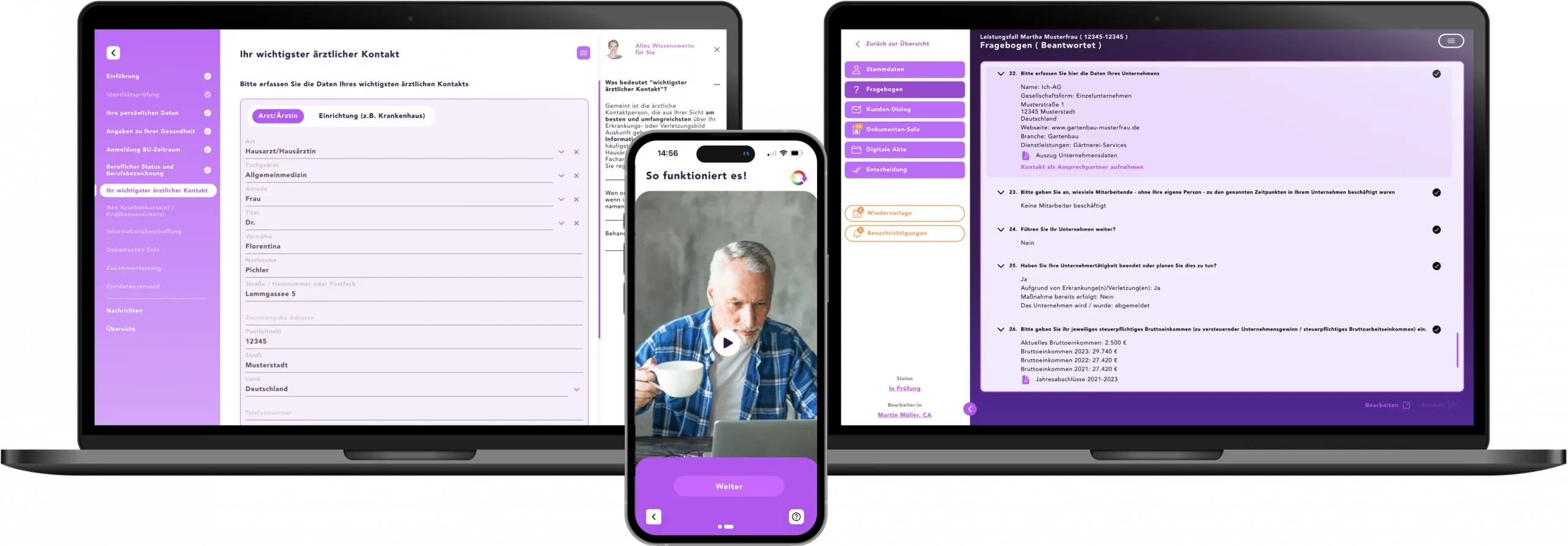 Für Versicherte, die schneller, einfacher und endlich verständlich – mit voller Kontrolle über alle Daten – zu Ihrer Leistungsentscheidung gelangen wollen!