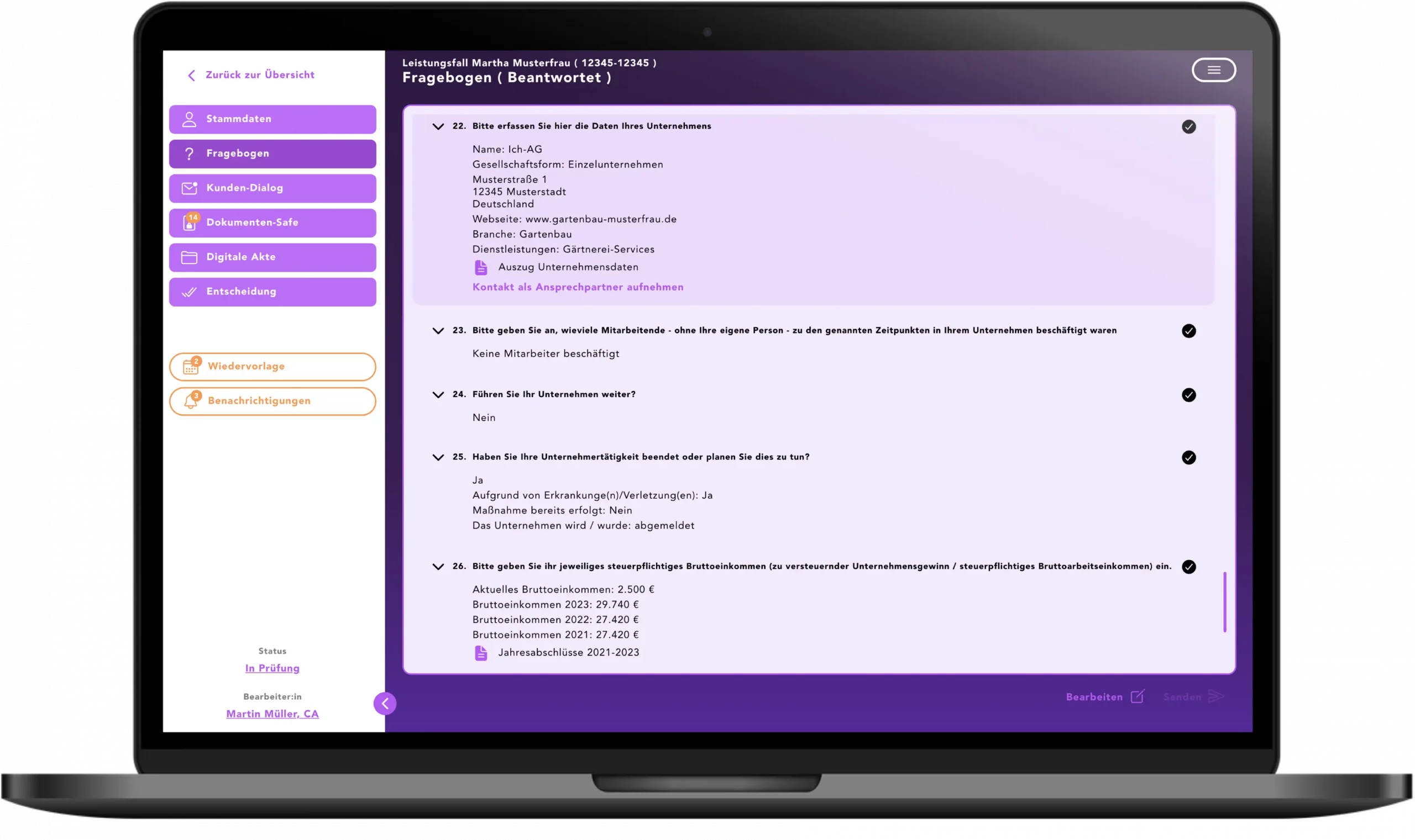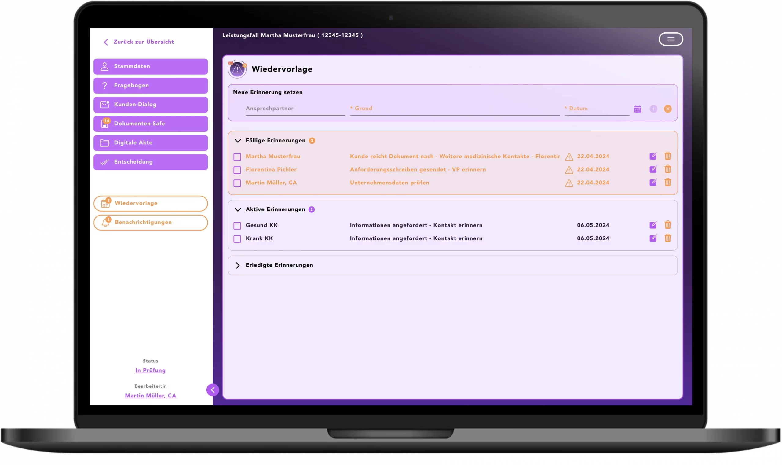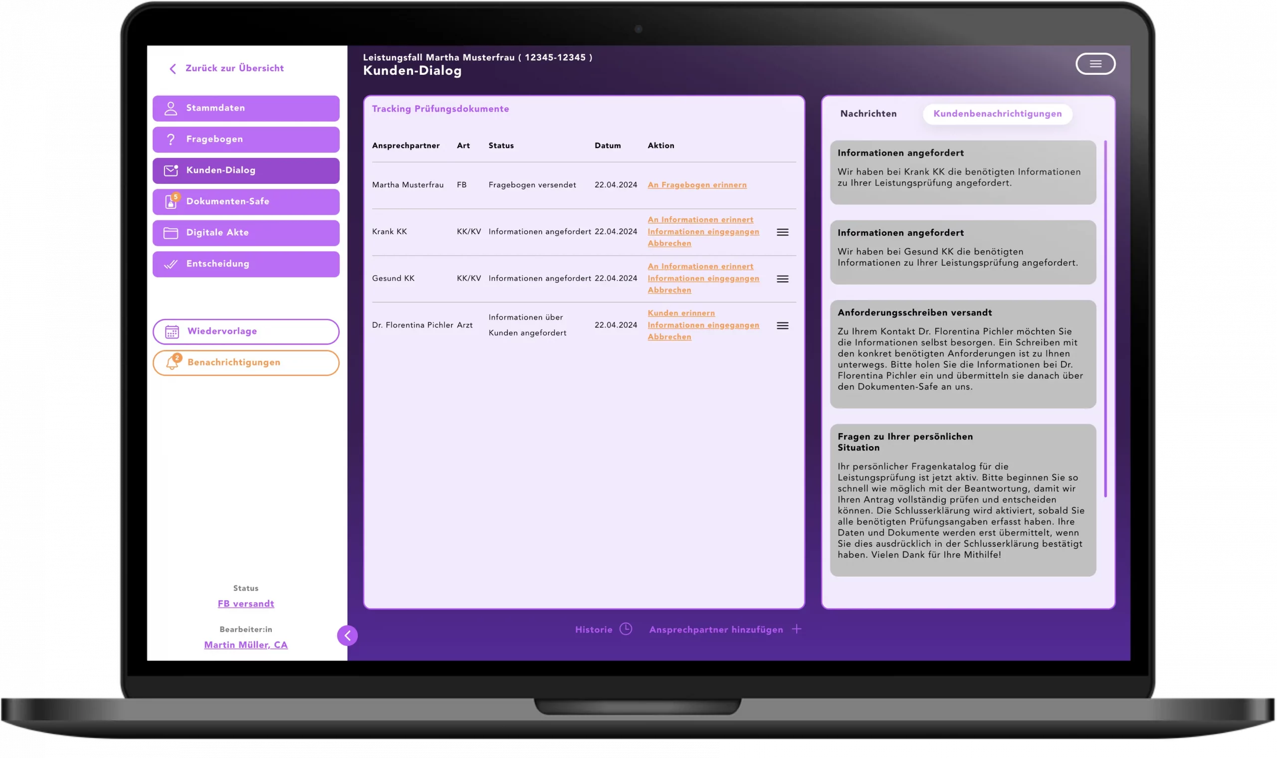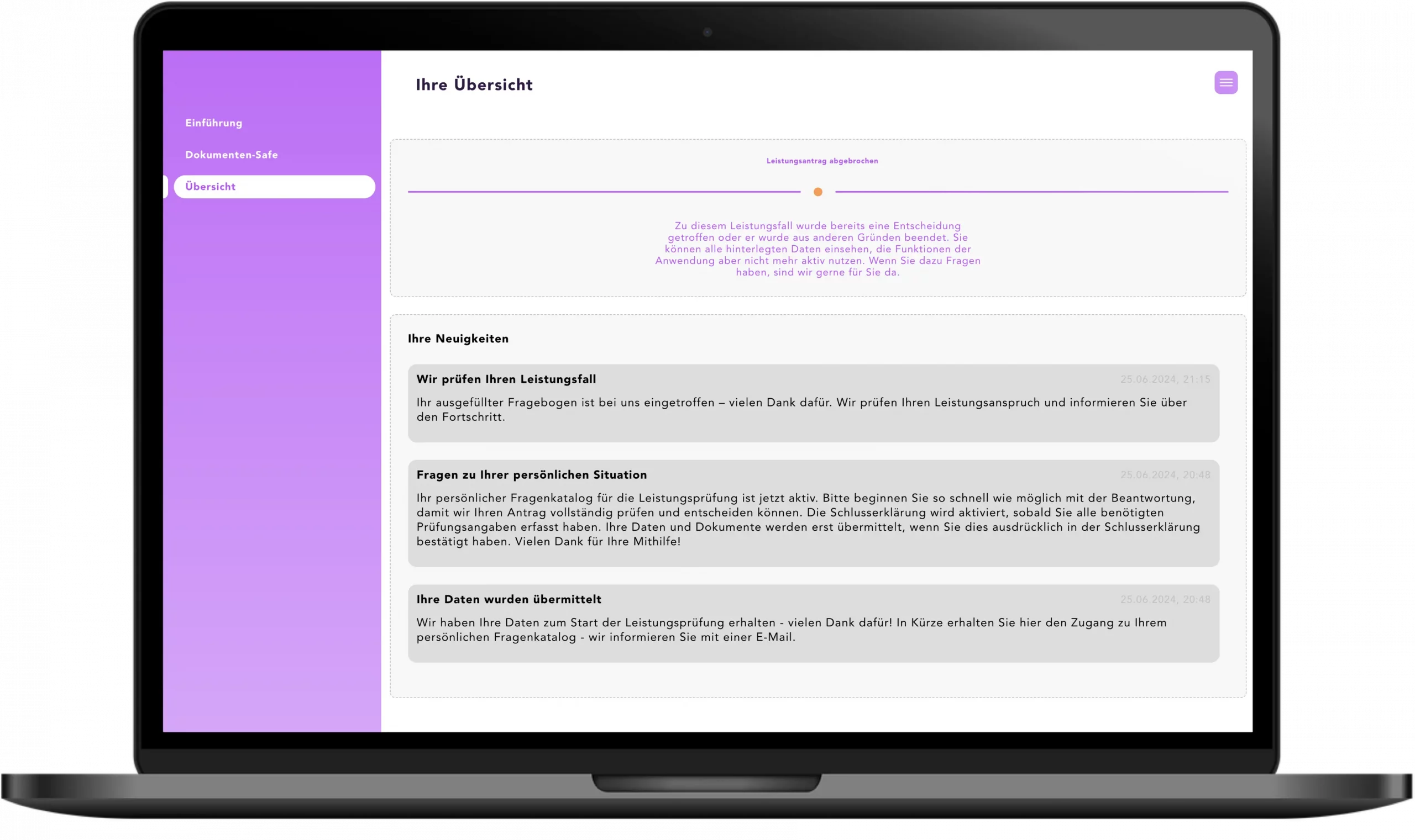 Für Versicherte, die schneller, einfacher und endlich verständlich – mit voller Kontrolle über alle Daten – zu Ihrer Leistungsentscheidung gelangen wollen!