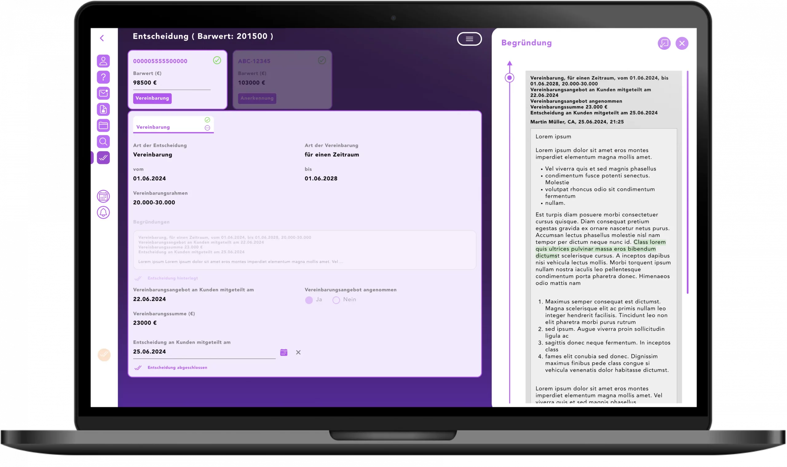 - Maximale Transparenz über alle Fortschritte und Aktivitäten bis zur Entscheidung